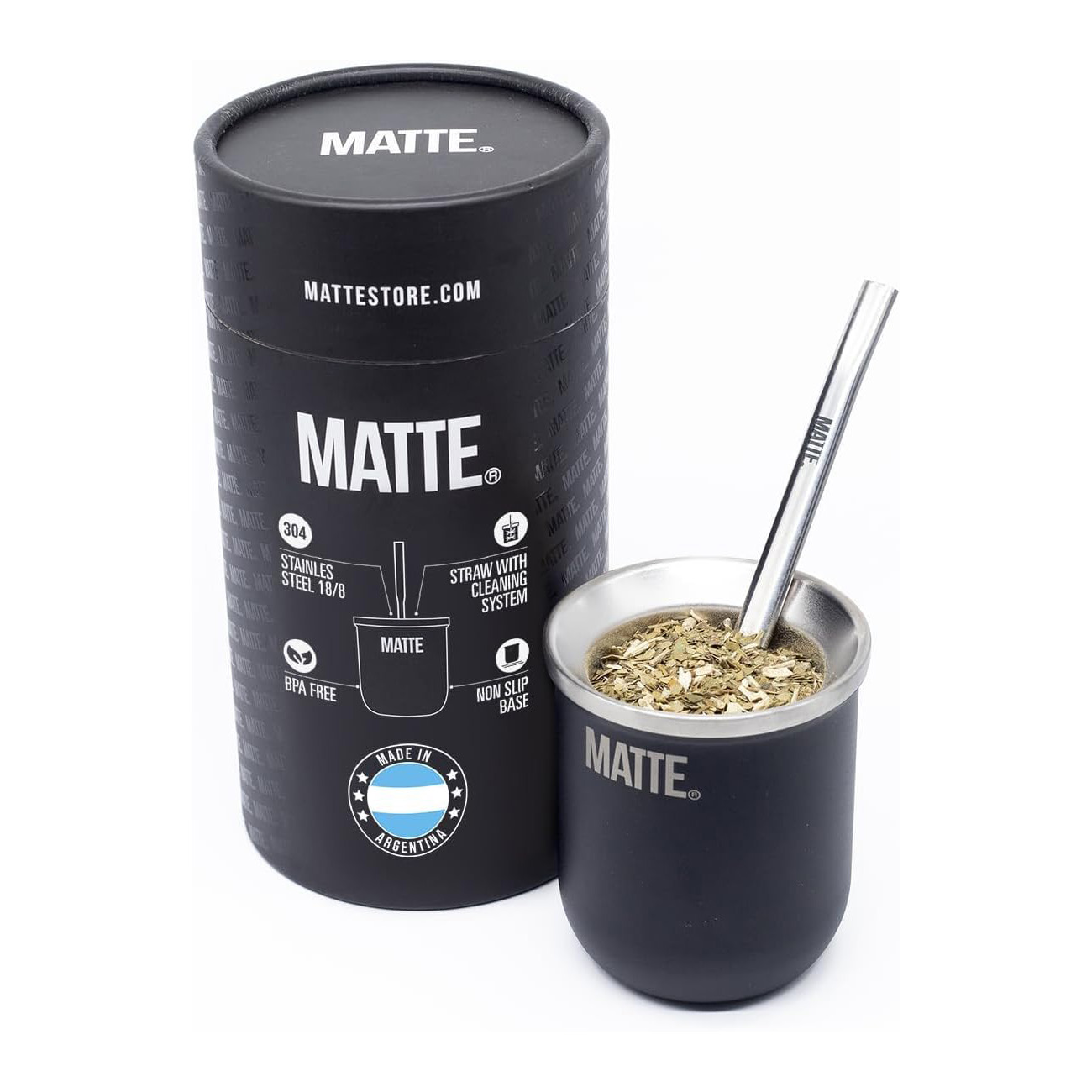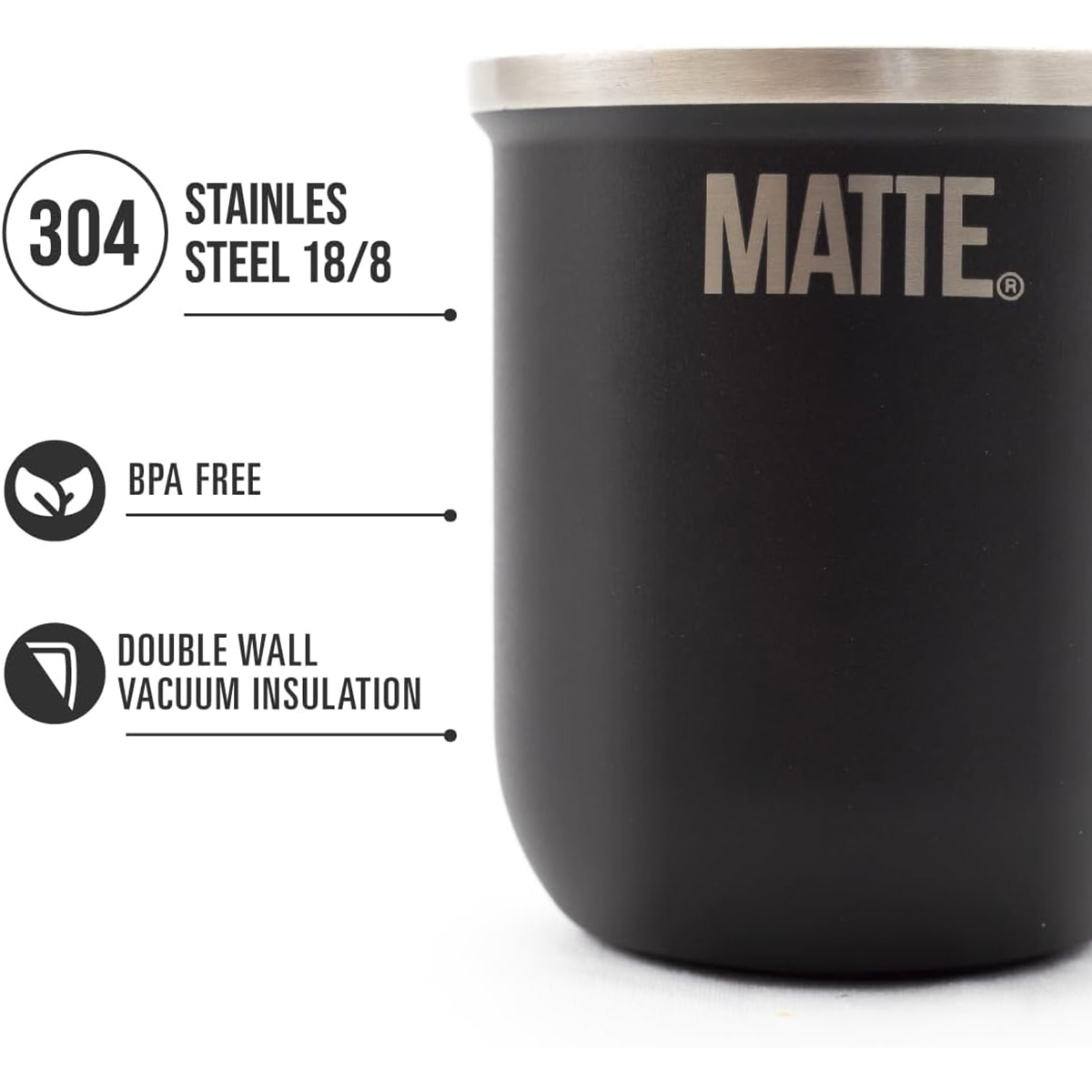 Mate De Acero Inoxidable Negro – Matte – x Unid.