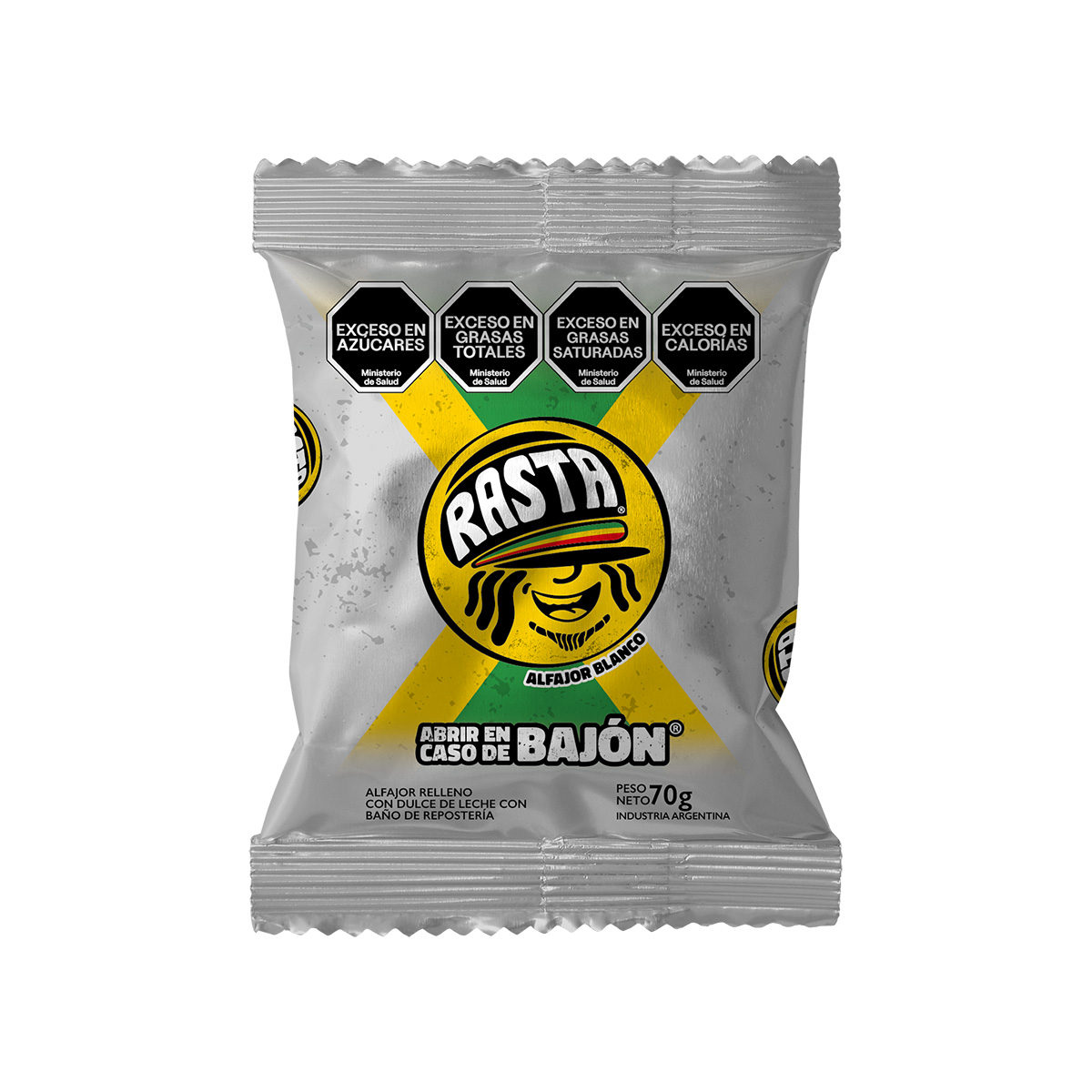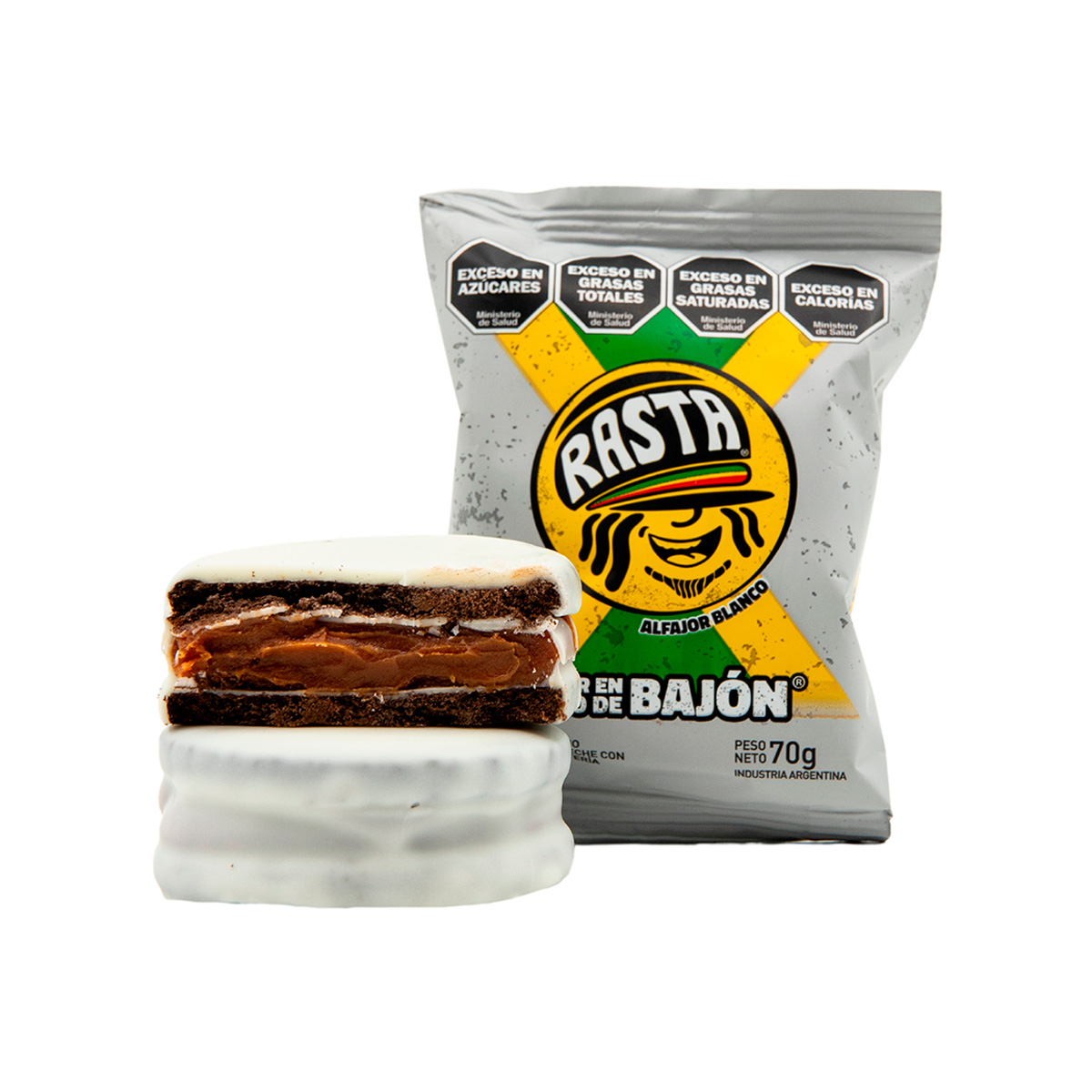 Alfajor Rasta con Dulce de Leche y Cobertura de Chocolate Blanco 12 x 6 x 70 g.